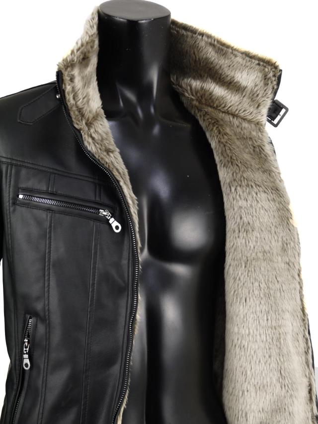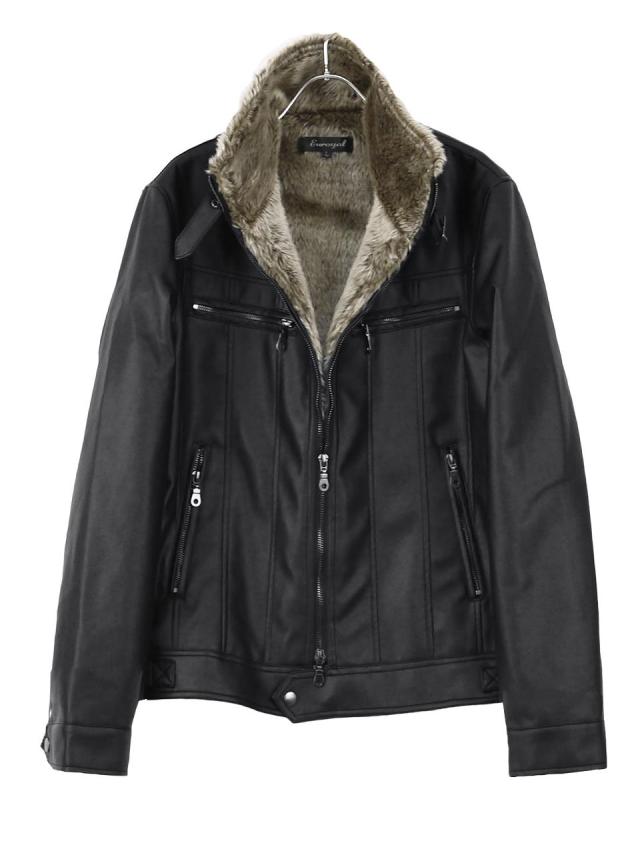 上質PUレザーを使用した本格ライダースジャケット。袖裏以外の裏地全面に肌触りの良いボアを贅沢に配した防寒性とデザイン性を兼備えた男のアイテム。