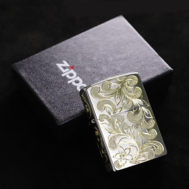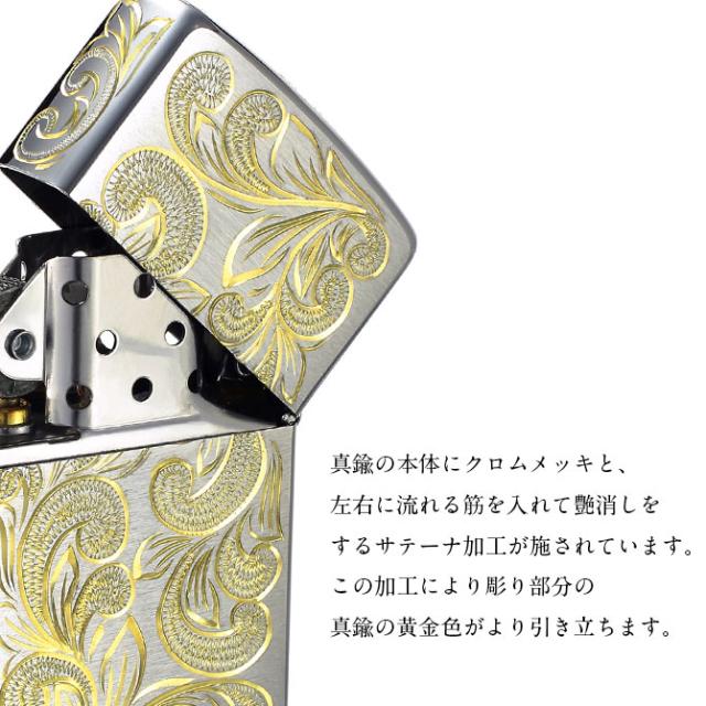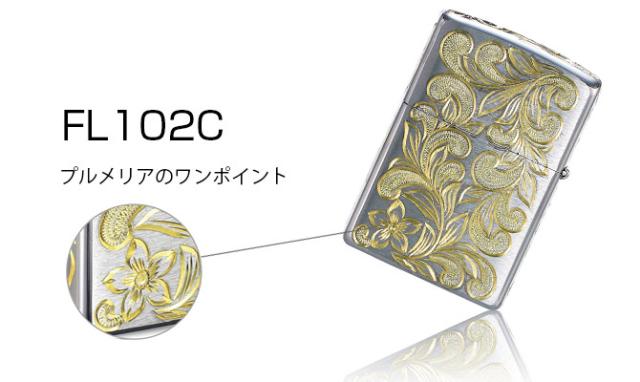 Zippo ライター ジッポライター 愛煙家 喫煙 真鍮 クロムサテーナ クロムメッキ #200 レギュラータイプ スクロール プルメリア 5面手彫り ハワイアンジュエリー おしゃれ かっこいい ジッポーライター 彼氏 夫 男性 メンズ プレゼント ホワイトデー 【品番:FL102C】