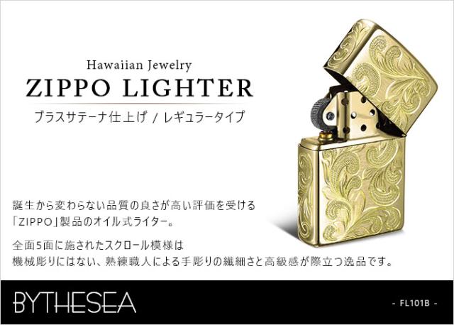 Zippo ライター ジッポライター 愛煙家 喫煙 真鍮 ブラスサテーナ #204 レギュラータイプ スクロール模様 5面手彫り ハワイアンジュエリー ブランド かっこいい おしゃれ BY THE SEA バイザシー 彼氏 夫 男性 メンズ 誕生日 プレゼント ホワイトデー 【品番:FL101B】