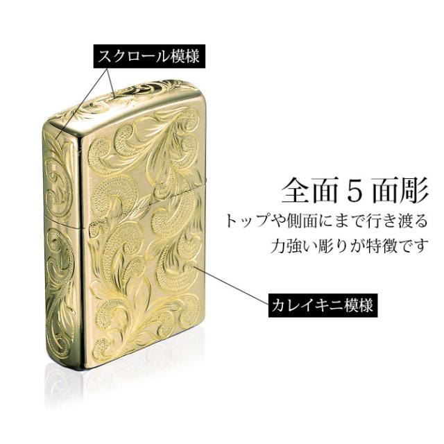職人の技が光る全5面ハワイアン彫りZippoライター