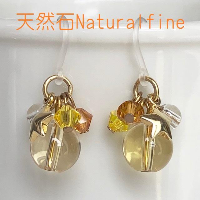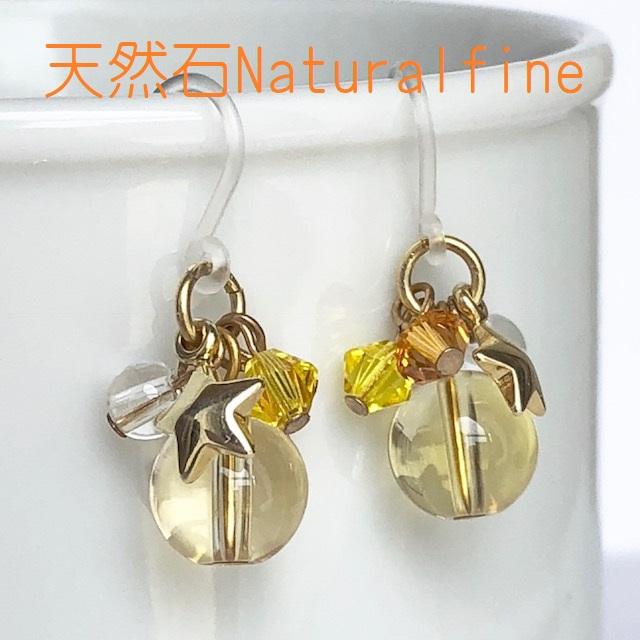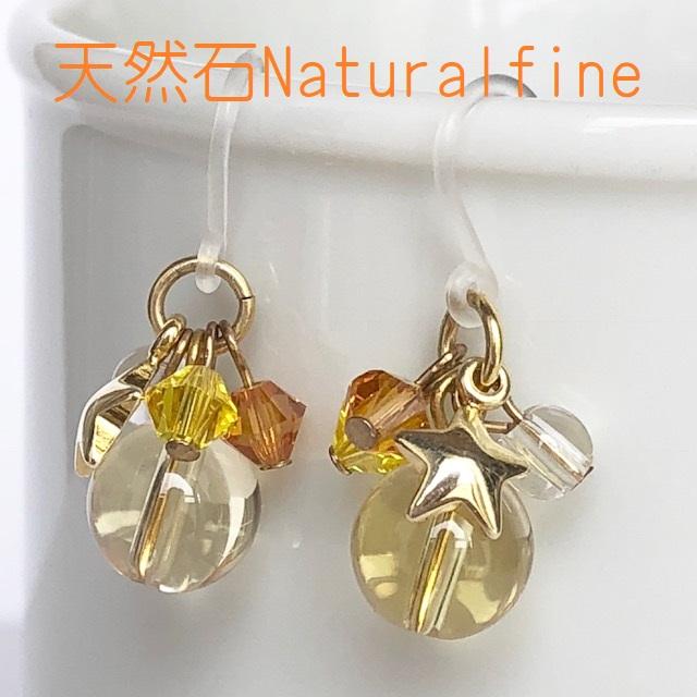 ピアス シトリン 天然石 チタン イヤリング 樹脂 パワーストーン 幸運の石 アレルギーフリー