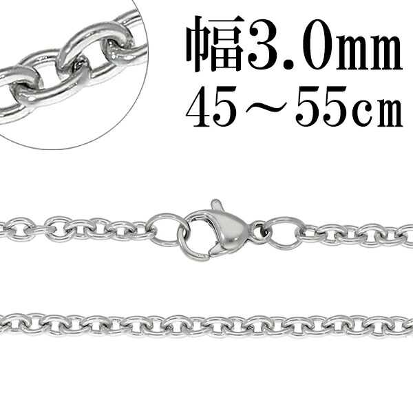 サージカルステンレスチェーン (あずきチェーン)幅3.0mm 45cm/50cm/55cm