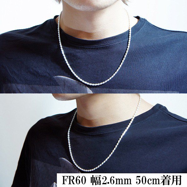 カットフレンチロープ シルバーチェーン 幅約2.6mm 50cm シルバー925 ネックレス チェーンのみ メンズ レディース