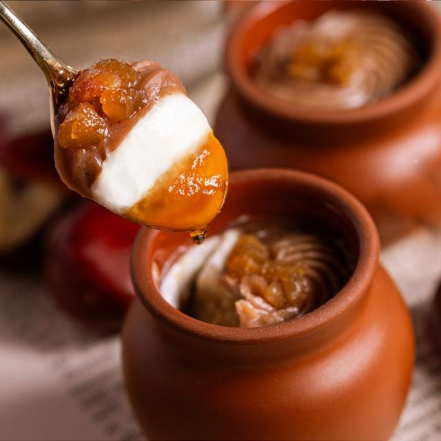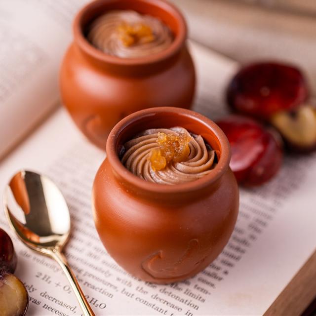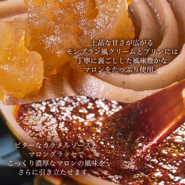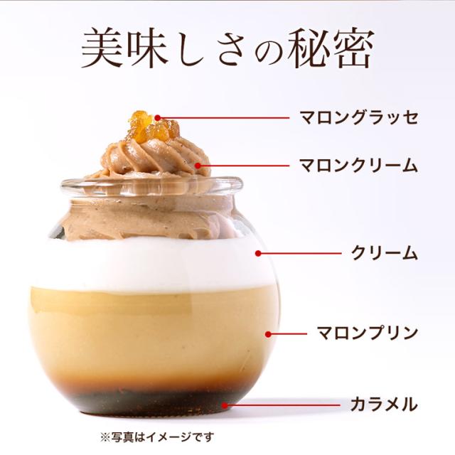 まるでモンブランみたいな神戸魔法の壷プリン®・マロン♪上品な甘さが広がる濃厚マロンクリームと、ふんわり魔法の食感を引きだすフレッシュなクリーム。とろける食感のプリン部分には、風味豊かなマロンを丁寧に裏ごししたマロン風味のカスタードプリンがタップリ!さらに、ビターなカラメルソースがマロンの風味を引き立てます。栗好きにはたまらないマロングラッセのダイスをトッピング。この秋、魅惑のハーモニーをご堪能ください。