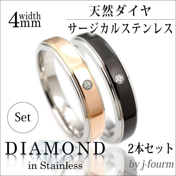 ペアリング 送料無料 刻印無料 両方ダイヤモンド 平打2段 リング 4mm 幅 ステンレス 指輪 サージカルステンレス