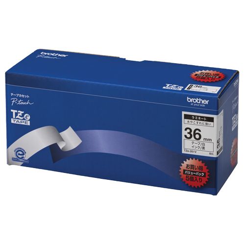 ピータッチ TZeテープ ラミネートテープ 36mm 白/黒文字 業務用パック 1パック(5個)