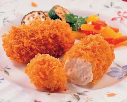 ★乳等を主要原料とする食品、かに、ベルシャメルソースベース(小麦粉、パーム油)、ソテーオニオン、チーズフード、ワイン、繊維状植物性たん白、食塩、砂糖、チキンエキスパウダー、ほたてエキスパウダー、こしょう、衣(パン粉、米粉、小麦粉、コーングリッツ、粉末油脂)/香料、調味料(アミノ酸等)、着色料、(一部にかに・小麦・乳成分・ごま・大豆・鶏肉・豚肉を含む)