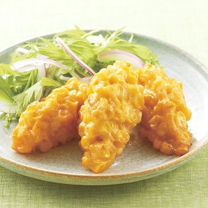 ★とうもろこしをふんだんに使用し、しょうゆダレを掛けて焼とうもろこしのような香ばしさを再現しました。とうもろこしの食感と甘さが楽しめるおつまみです。