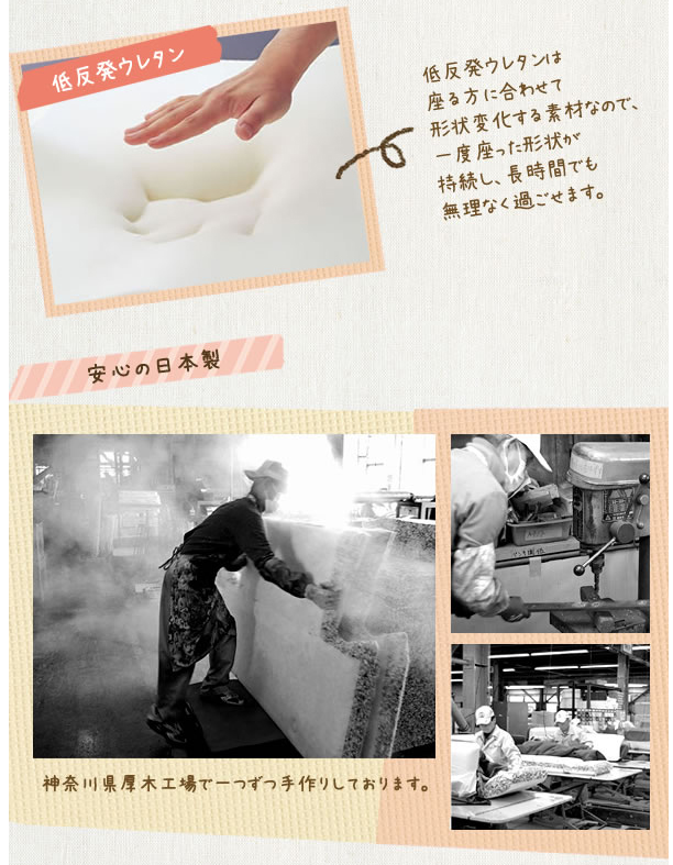 低反発ウレタンは座る方に合わせて形状変化する素材なので、