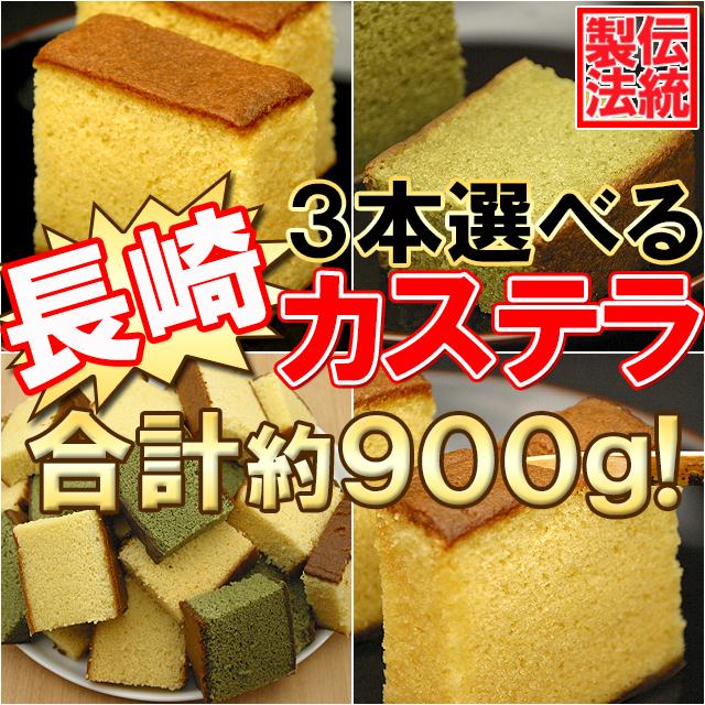 【送料無料】伝統製法☆本場長崎のカステラ合計900g!好きな味が選べる3本 プレーン・レモン・抹茶