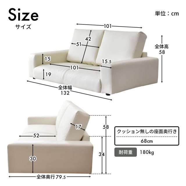 ソファ本体/約:幅131×奥行77×高さ57 座面高19(cm)