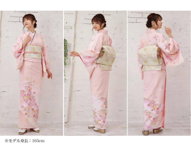 ※モデル着用の袋帯・帯締め・帯揚げ・重ね衿・草履バッグセットの色、デザインはイメージです。数ある中から呉服のプロがコーディネートしてお届け致します。