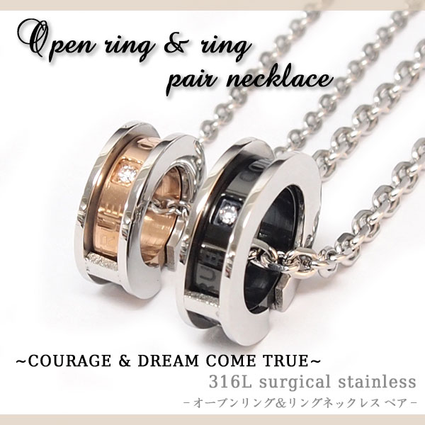 316Lステンレス オープンリング&リングネックレス ペア【 プレゼント 金アレ 対応 】