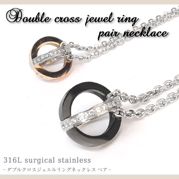 316Lステンレス ダブルクロスジュエルリングネックレス ペア【 プレゼント 金アレ 対応 】
