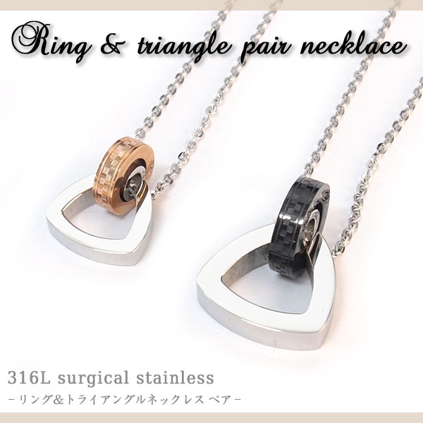 316Lステンレス リング&トライアングルネックレス ペア【 プレゼント 金アレ 対応 】