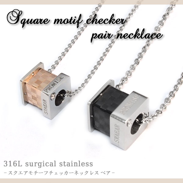 316Lサージカルステンレス スクエアモチーフチェッカーネックレス ペア