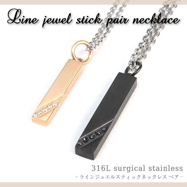 316Lステンレス ラインジュエルスティックネックレス ペア【 プレゼント 金アレ 対応 】