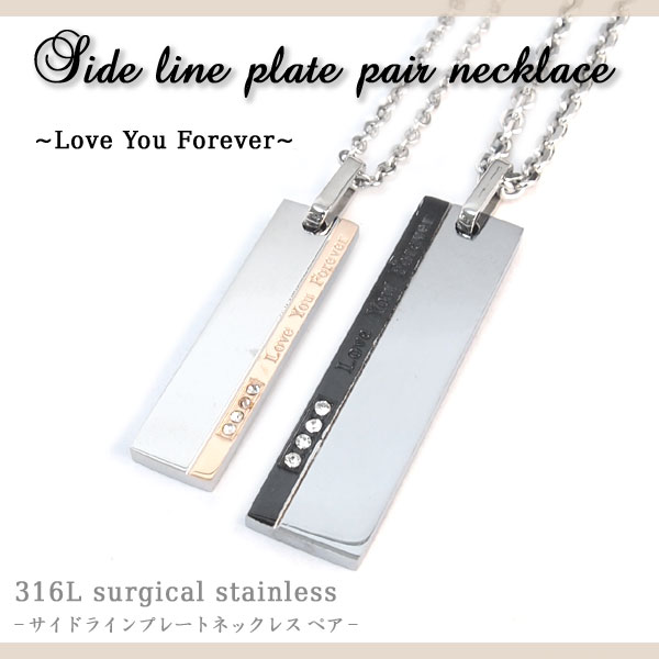 316Lサージカルステンレス サイドラインプレートネックレス ペア