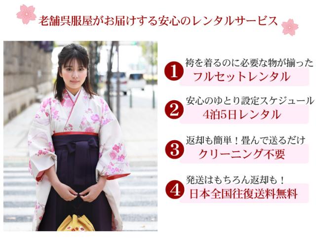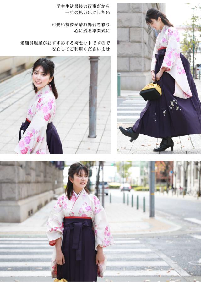 袴 レンタル 卒業式 袴セット 卒業式袴セット2尺袖着物&袴 フルセットレンタル 安い 上品 白