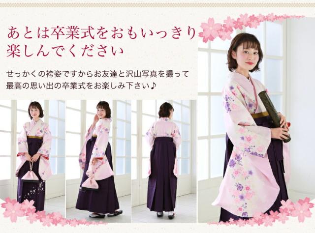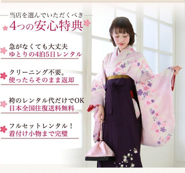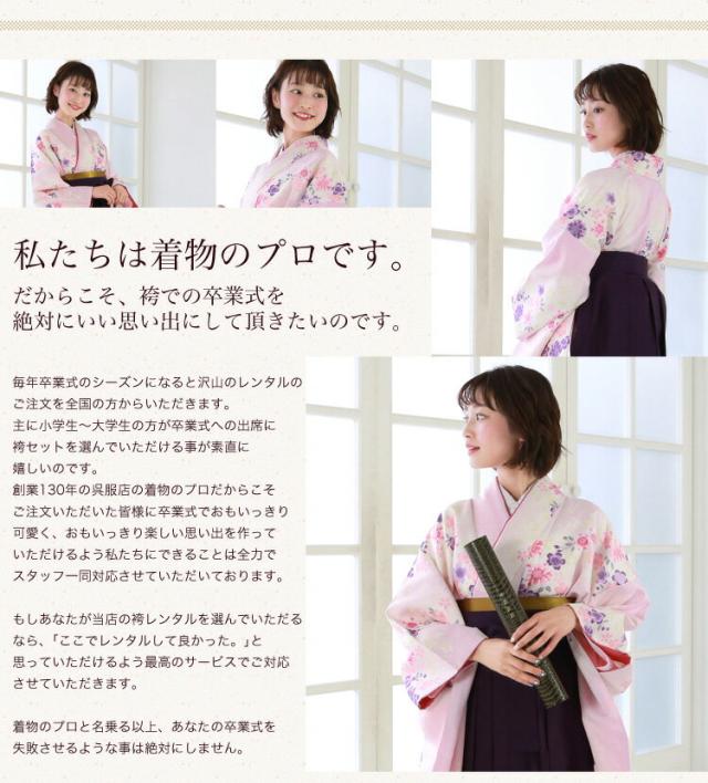 袴 レンタル 卒業式 袴セット 卒業式袴セット2尺袖着物&袴 フルセットレンタル 安い 上品 ピンク