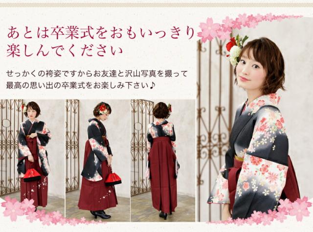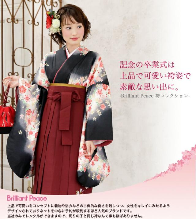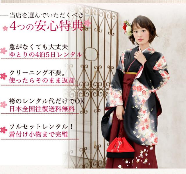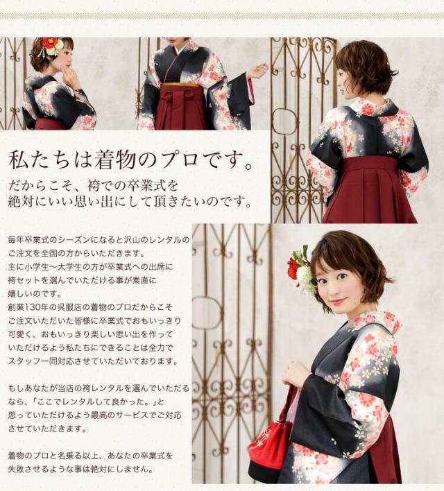 袴 レンタル 卒業式 袴セット 卒業式袴セット2尺袖着物&袴 フルセットレンタル 安い 黒