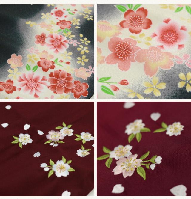 | ※モデル着用の巾着・半巾帯・重ね衿・草履の色、デザインはイメージです。 数ある中から呉服のプロがコーディネートしてお届け致します。 ※着物の柄の配置は写真とまったく同じではございません。 | |||