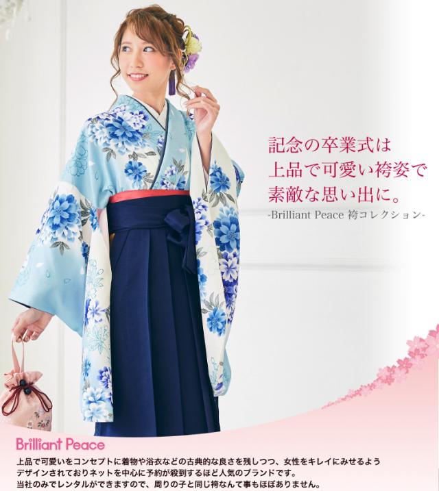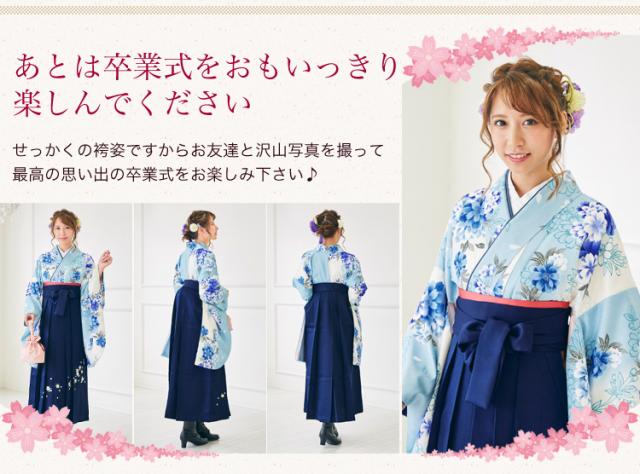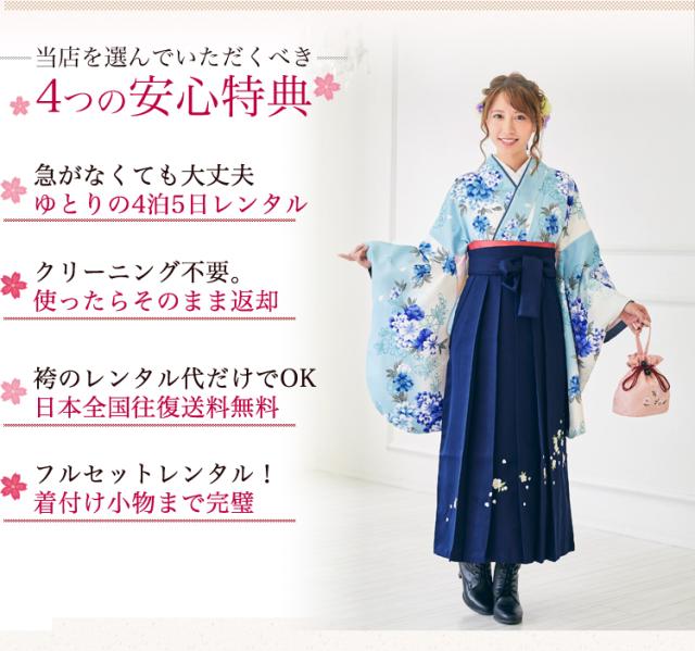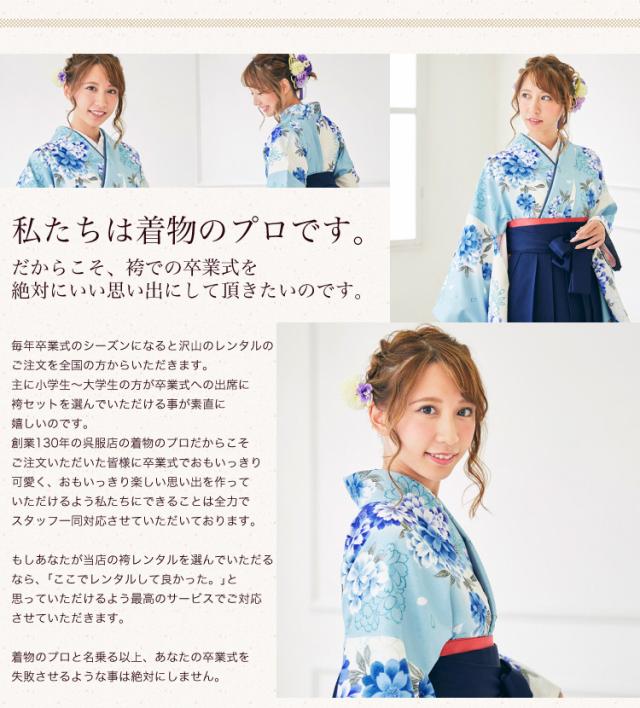 袴 レンタル 卒業式 袴セット 卒業式袴セット2尺袖着物&袴 フルセットレンタル 安い 華やか 青