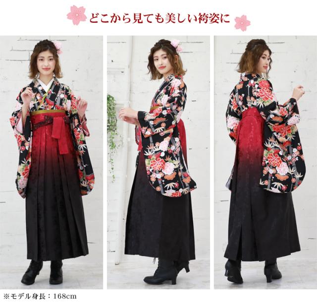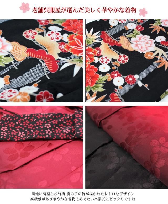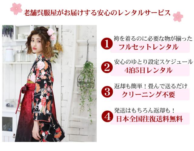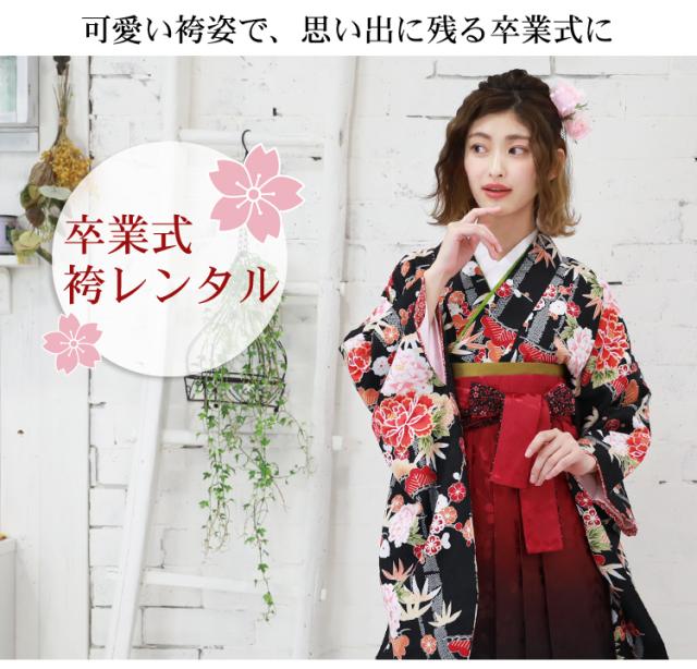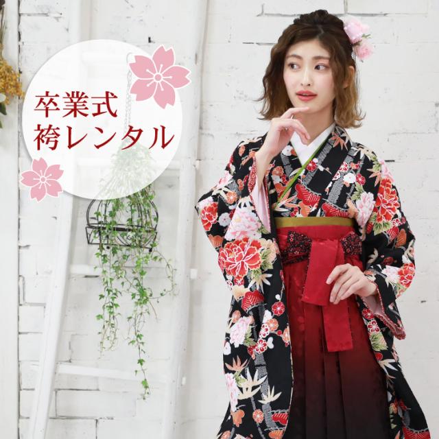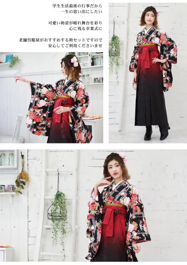 袴 レンタル 卒業式 袴セット 卒業式袴セット2尺袖着物&袴 フルセットレンタル 安い 黒