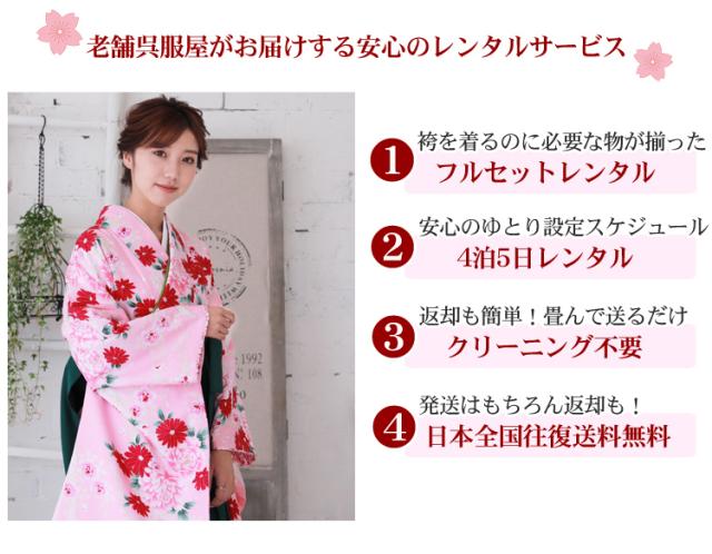 袴 レンタル 卒業式 袴セット 卒業式袴セット2尺袖着物&袴 フルセットレンタル 安い ピンク
