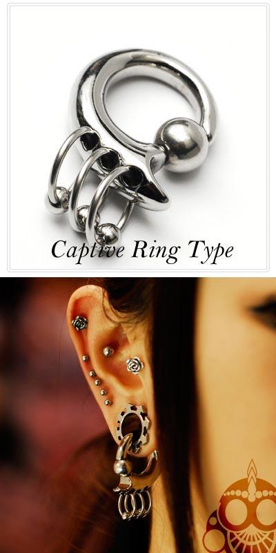 ステンレスピアス 4G 3連 リング キャプティブリングピアス 拡張ピアス ボディピアス かっこいいピアス メンズピアス