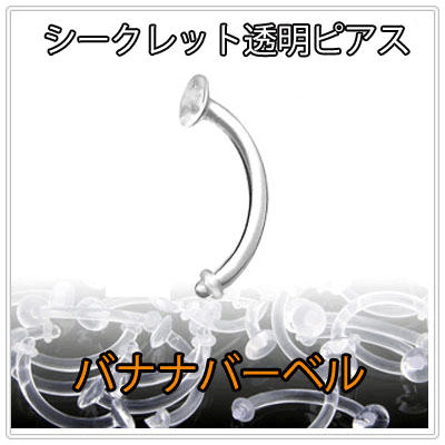 透明ピアス 16G シークレット 隠せるピアス クリア バナナバーベル O-リング付 へそピアス ロックピアス アイブローピアス ニップルピアス ボディピアス