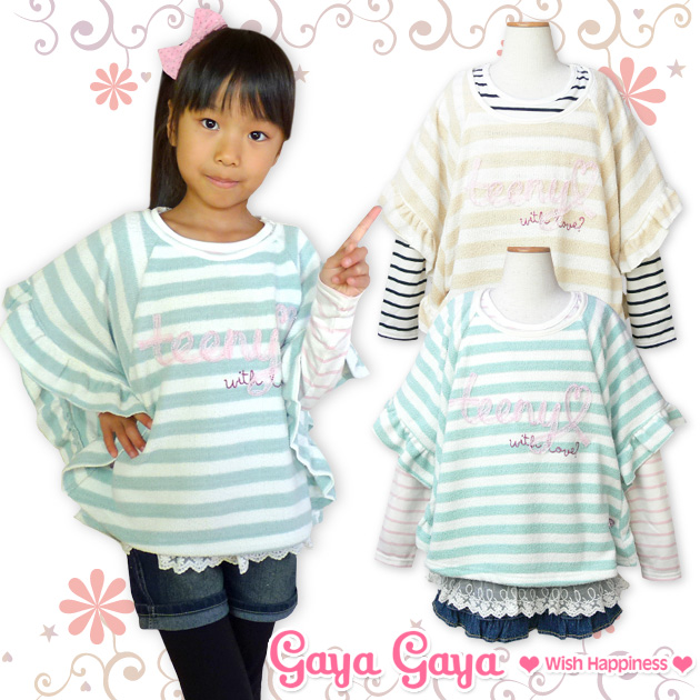 【女児キッズ】【アンサンブル】Gaya Gaya レース装飾ボーダードルマン×長袖Tシャツアンサンブル