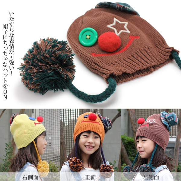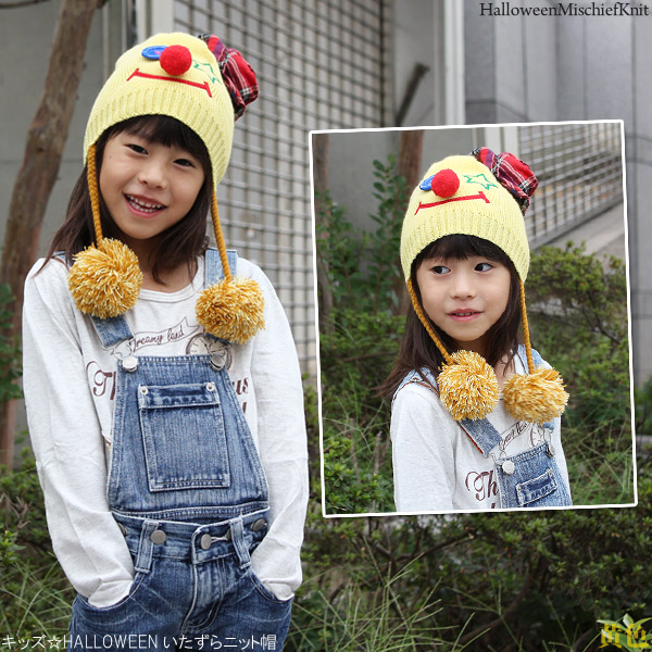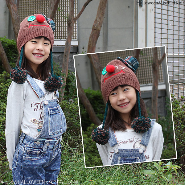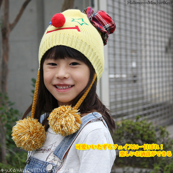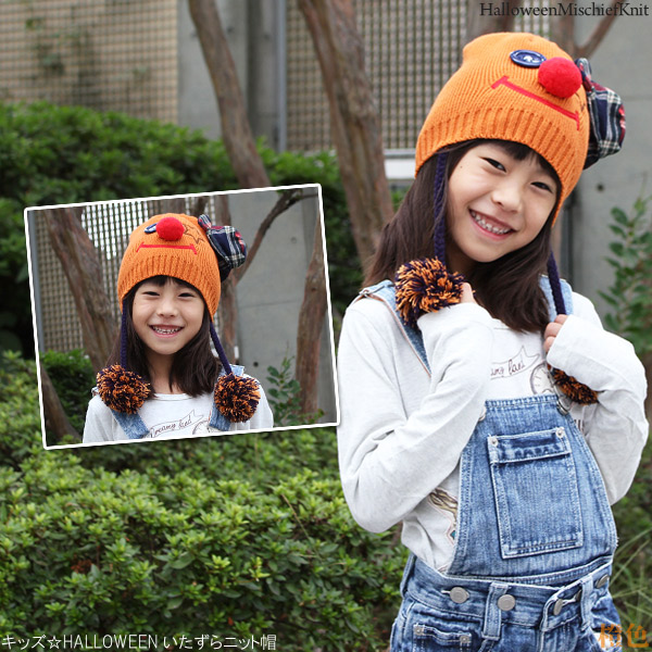 子ども 帽子 [メール便可] ニット帽 耳あて付き キッズ 秋冬 男の子 女の子 / キッズ HALLOWINいたずらニット帽