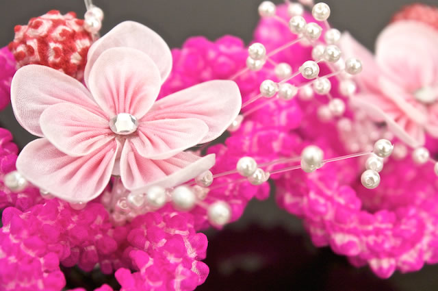髪飾りは、お顔の一番近い部分につけるものですから、とって目立つ所です。