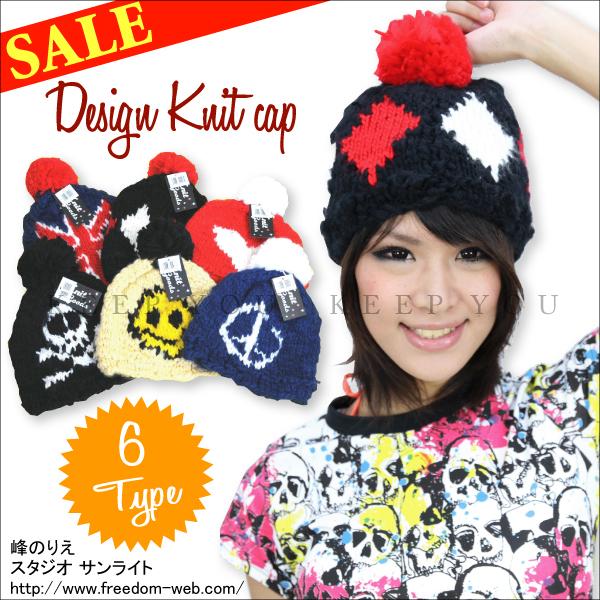 【メール便対応】【限定セール】ニットキャップ ニット帽子【ユニオンジャック/ハート/ダイヤ/スカル/スマイル/ピース】┃