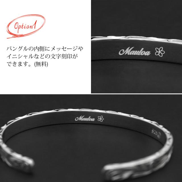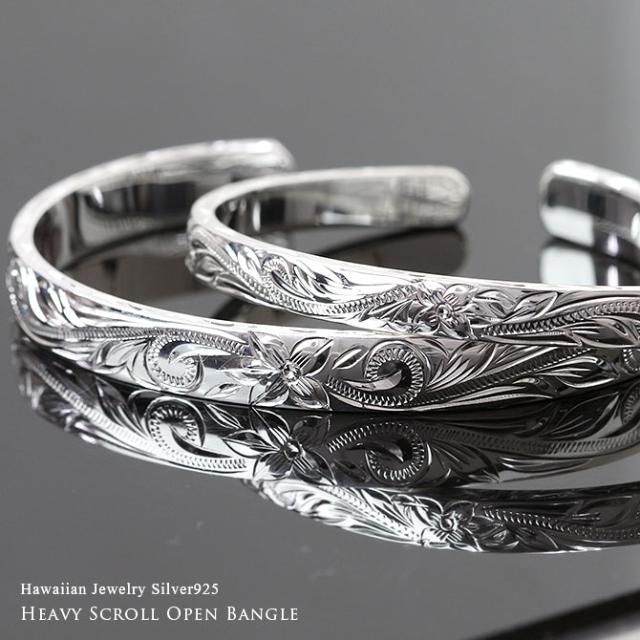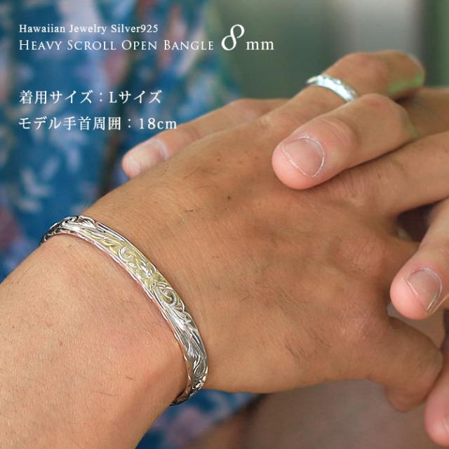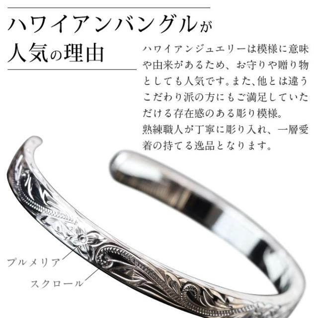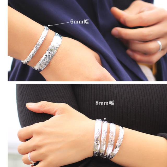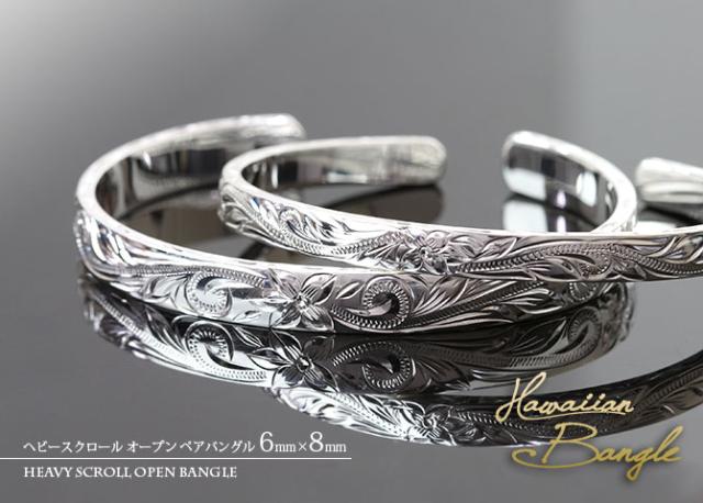 ハワイアンジュエリー バングル ペアバングル 幅6mm&8mm 刻印 無料 サイズが選べる オープンバングル ペア 2本セット フラット 厚み有 サイドに飾り彫り シルバー925 太め カップル 夫婦 プレゼント ホワイトデー 卒業式 入学式 【品番:BM5027-6-8P】