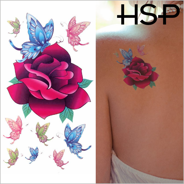 HSP ハロウィン 【¥596】タトゥーシール ピンクローズ&バタフライ【Halloween TATTOO 】