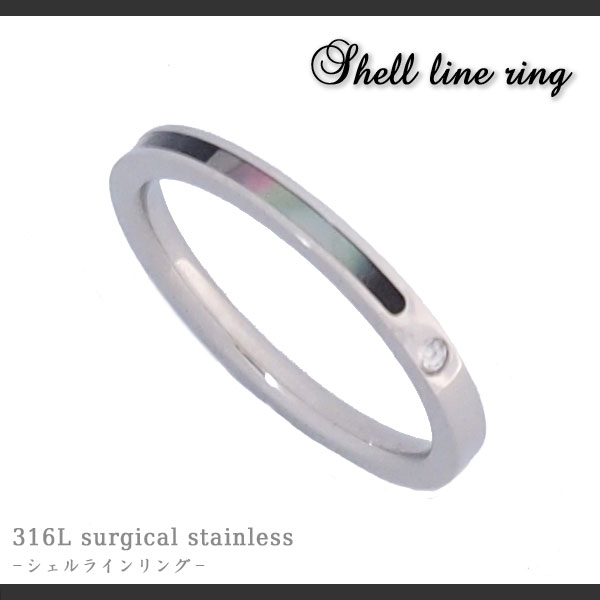 316Lステンレス シェルライン2ジュエルリング 指輪【2個で送料無料】【 ペアにも 金アレ 】