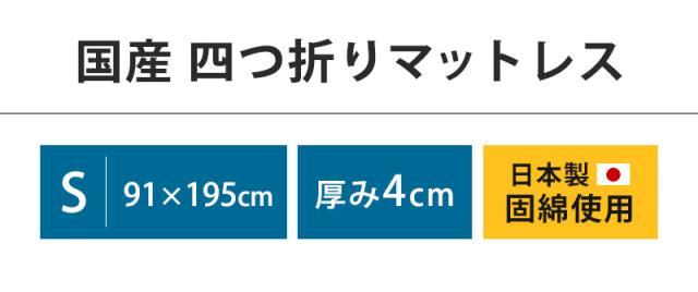 マットレス シングル 四つ折り 硬質 4×91×195cm 厚み4cm 固綿使用 当店限定 敷き布団 日本製 車中泊 国産