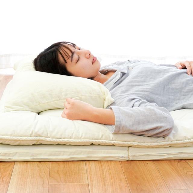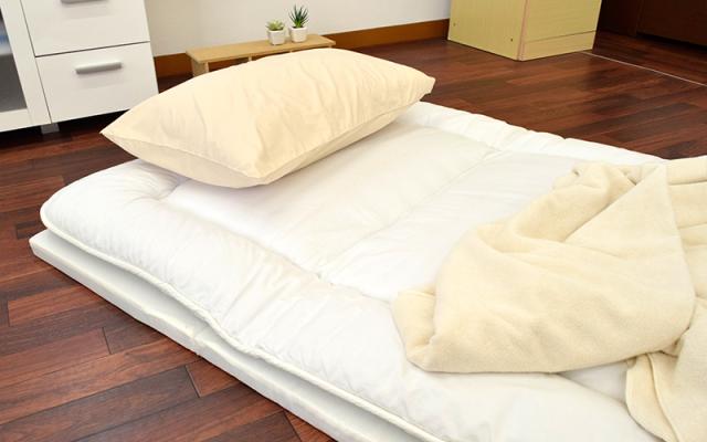 いつも使用しているお布団の下に、このマットレス1枚敷くだけ。底づき感が気になったり、ちょっとヘタってきた布団も、これを1枚敷くだけで今までよりも快適に。寒い冬場には、床からの冷えを軽減する効果もあります。