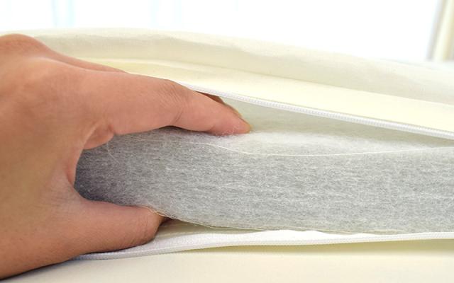 通気性に優れた固綿を使用しています。弾力は少なく、少しかための寝心地。固綿は通常のウレタンに比べ約2倍の通気性があるので、長時間の使用でもムレが少なく快適です。