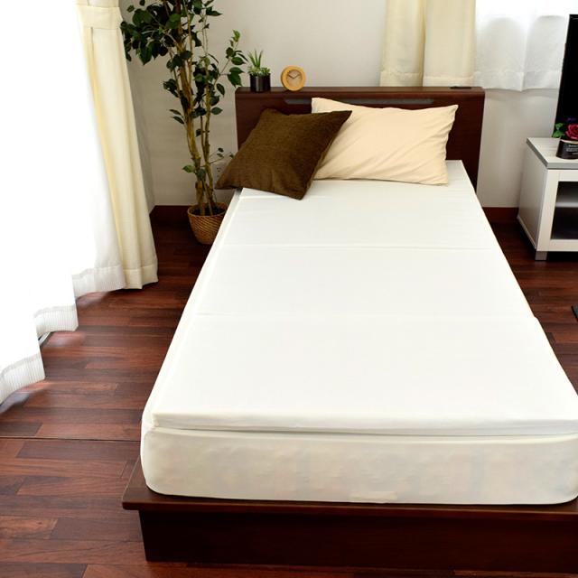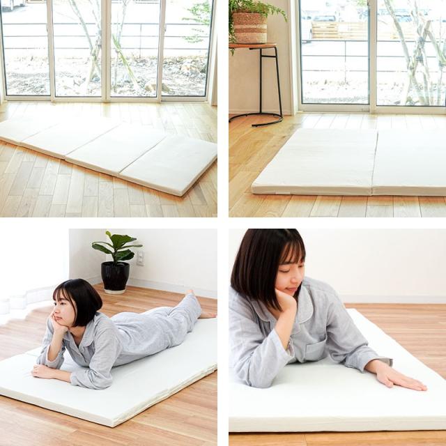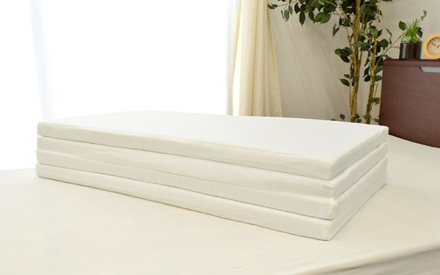 収納にもお手入れにも便利な4つ折りタイプのマットレスです。パタパタっと簡単に折り畳めるので、1枚もののマットレスに比べて取り扱いが簡単。ウレタン製のものと比べると少しだけ重たくはなりますが、小柄な女性でも持ち運びらくらくです。