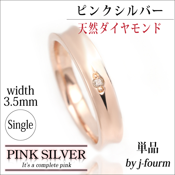 送料無料 刻印無料 ダイヤモンド ピンクシルバー 逆甲丸 へこみ リング 3.5mm 幅 指輪 単品