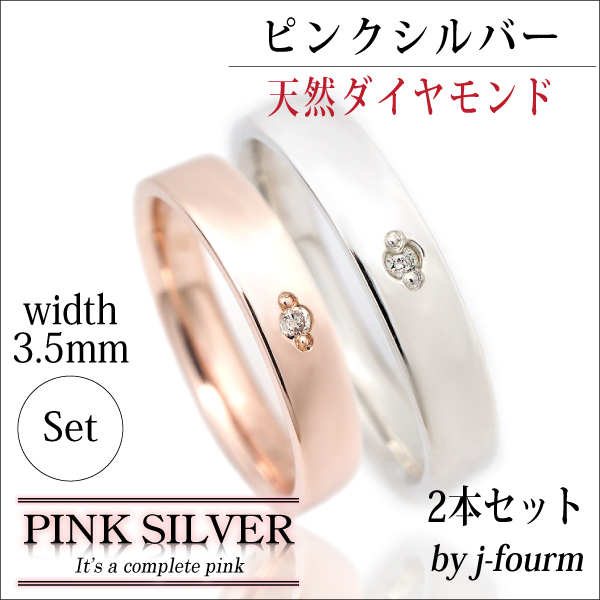 ペアリング 送料無料 刻印無料 ダイヤモンド ピンクシルバー シルバー925 平打 リング 3.5mm 幅 結婚 指輪