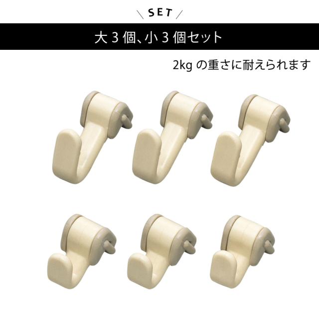 かもいや家具の上部にワンプッシュでOK。冬の寒い時期や梅雨時期の屋内での洗濯物干しやちょっとした小物をかけるのに重宝します。大小のセットでお届けします。