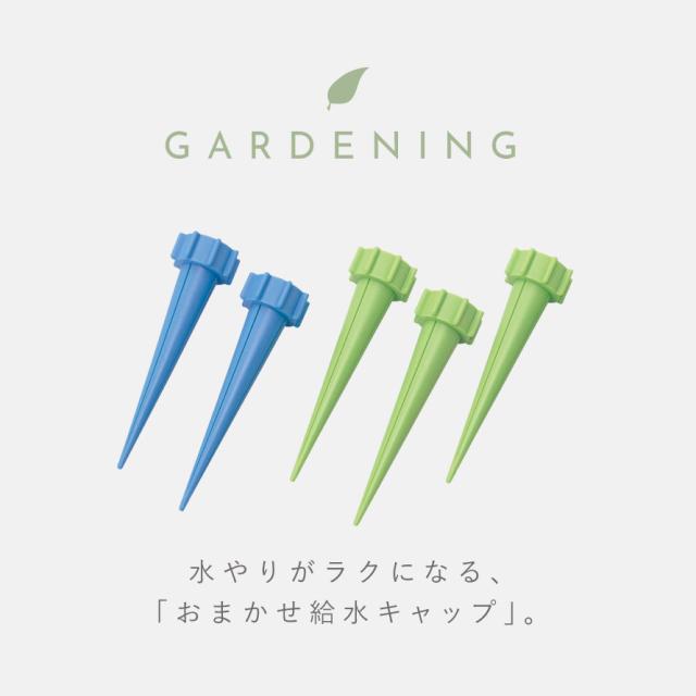 土に差し込んでおくだけで適量を給水「おまかせ給水キャップ」。市販のペットボトルに装着し、土に差すだけ。簡単に水やりができるので、留守中も給水不足になる心配がありません。
