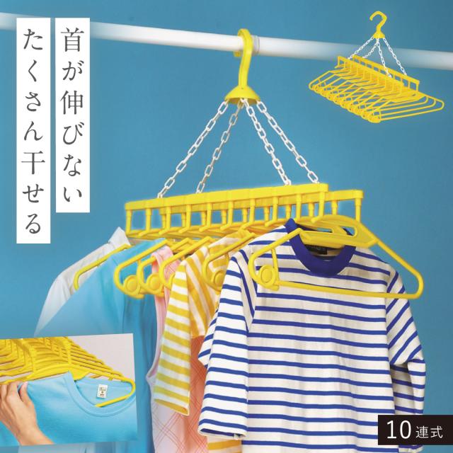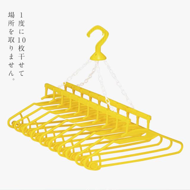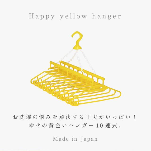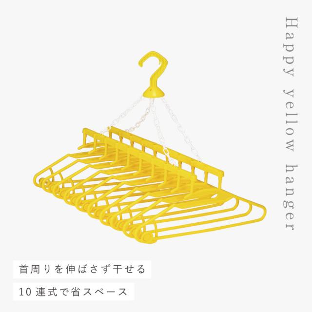 洗濯ハンガー 首が伸びない 10連 物干しハンガー 外干し 室内干し 部屋干し 軽い プラスチック 黄色 イエロー 洗濯グッズ 洗濯用品 ランドリー アイデア 便利 便利グッズ 生活 幸せの黄色いハンガー10連式