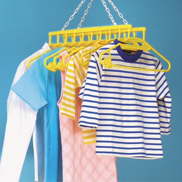 1度に10枚の衣類が干せて場所を取らず、まとめて干してとりこめたり、移動も楽ちんです。