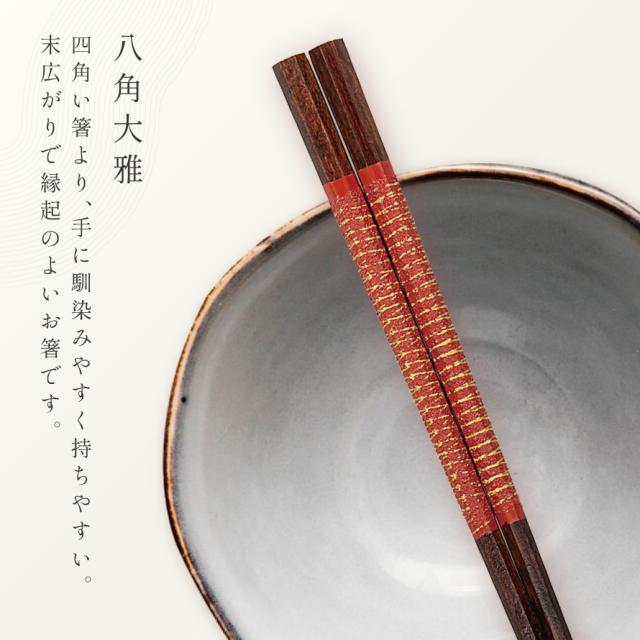 お箸の産地として有名な、福井県小浜市で作られた若狭塗のお箸。末広がりで縁起の良く持ちやすい八角形で、普段使いに最適です。