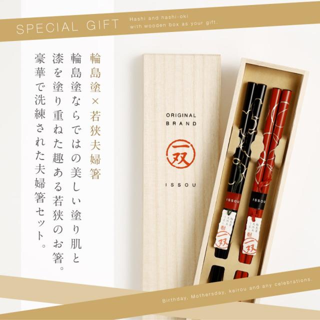 箸 輪島塗 若狭箸 結婚祝い ペア プレゼント 一双 issou イシダ 日本製 高級 夫婦箸 お箸 ギフト 結婚 祝い 友人 夫婦 両親 お祝い おしゃれ 夫婦箸 匠 輪島塗 縁 敬老の日 ギフト プレゼント
